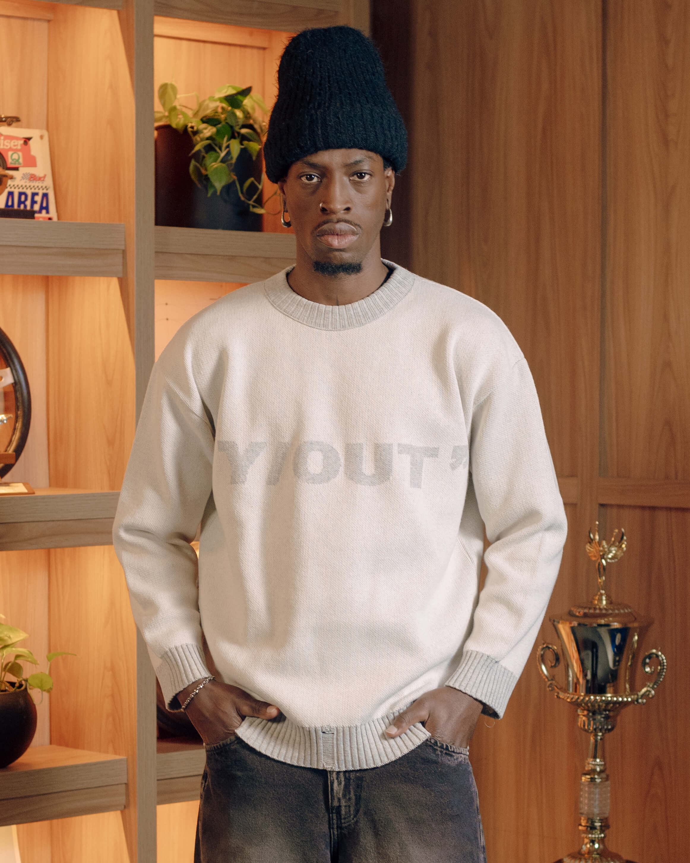 Este suéter tejido le aporta dimensión y textura a tus outfits. Su gráfica frontal en bajo contraste y los pequeños desgastes aportan un acento sutil pero con carácter. Una pieza clave para elevar básicos, ideal para llevar con denim o pantalones amplios.