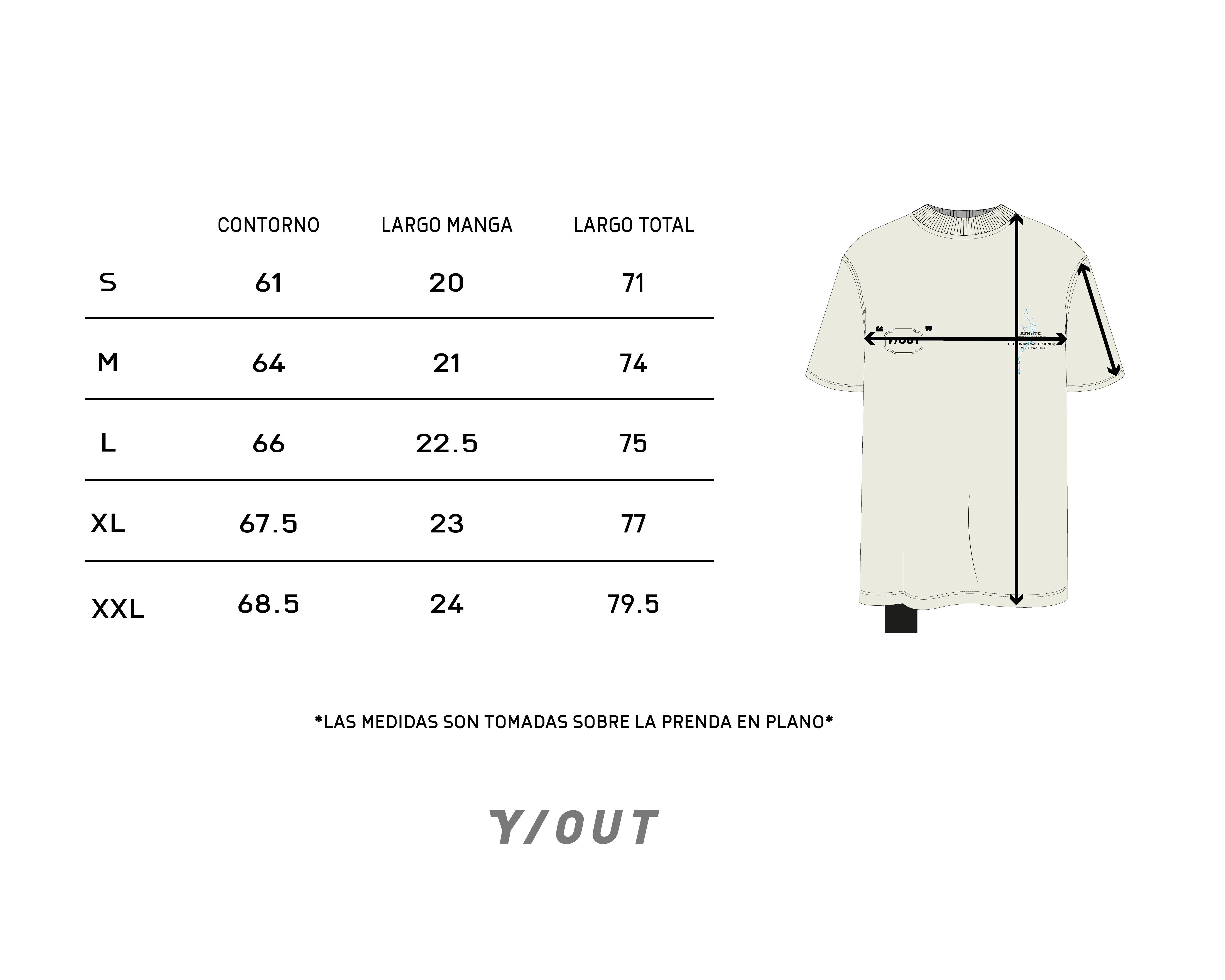 Oversized ivory T-shirt in 280g cotton (Medium weight). A statement piece with aspirational graphic details that elevate this urban statement to another level.