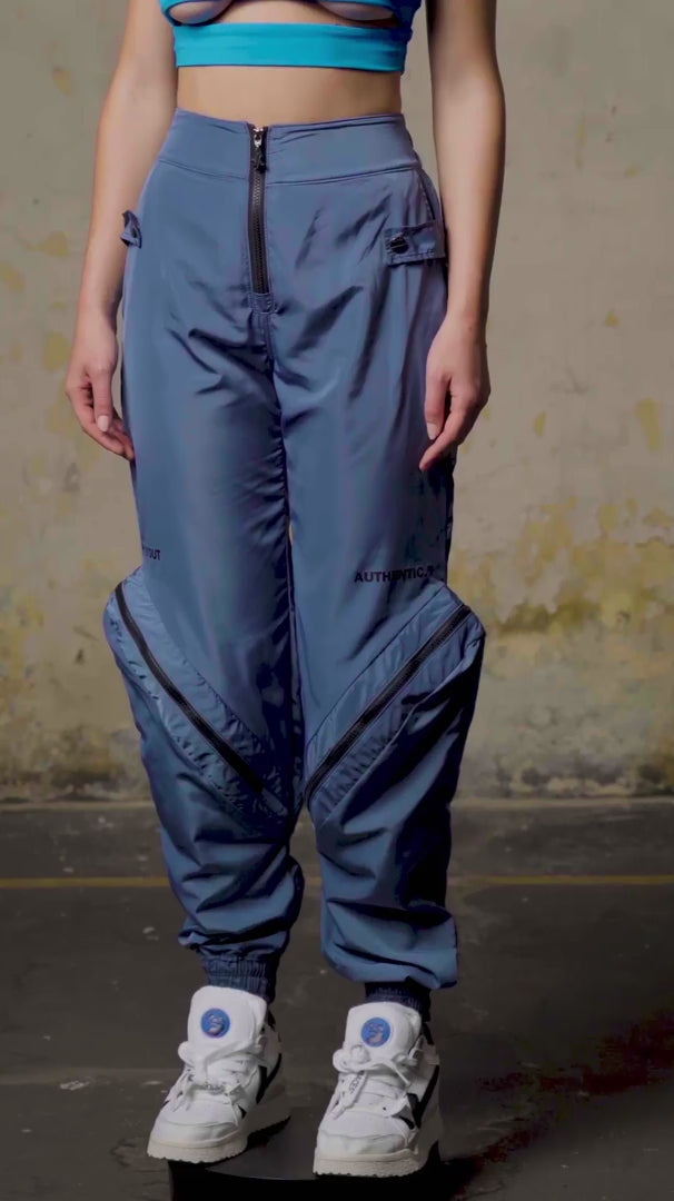 Un jogger azul en tela antifluido con diseño. Este pantalón se vuelve tu aliado perfecto por su comodidad, adaptándose así a todos los momentos del día