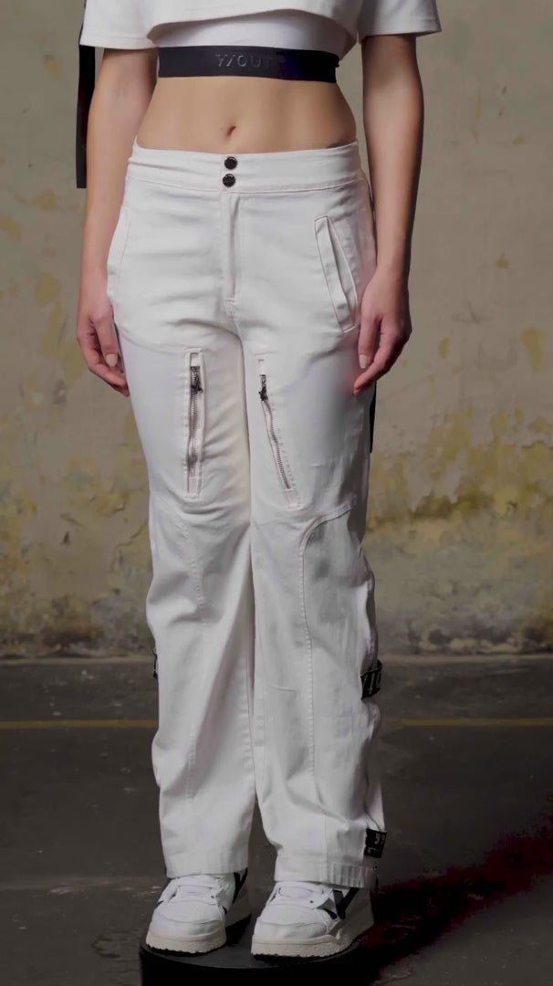 Un pantalón que lleva tus outfits a otro nivel con sus detalles de cierres en sus costados y su delantero, además de que su tono Ivory hace que salga con todo, este pantalón va a ser que resaltes siempre que lo uses.