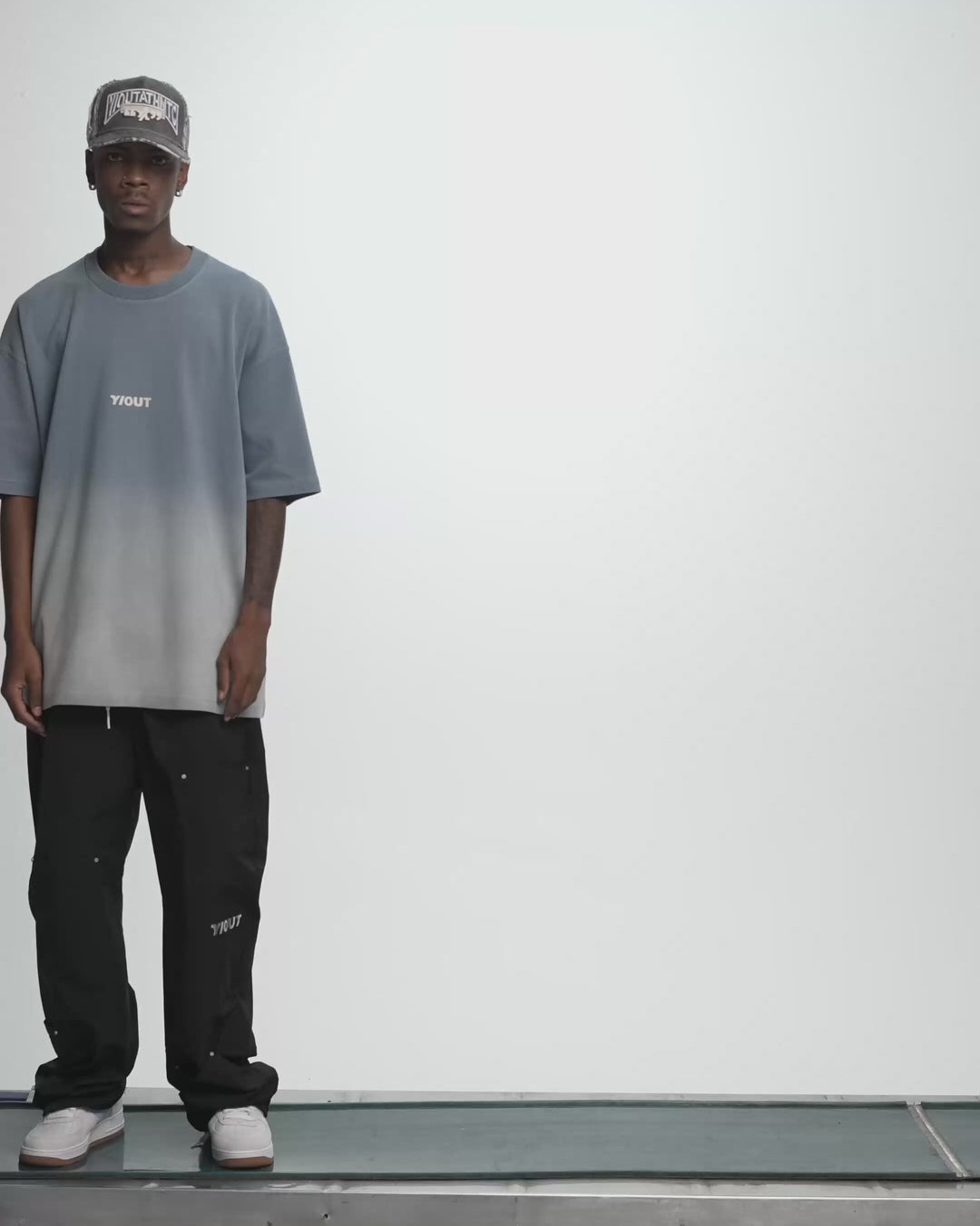 Camiseta de fit oversize en algodón de 320g. Su diseño en degradé hace que sea una pieza única llena de actitud, con estética airport-to-studio.