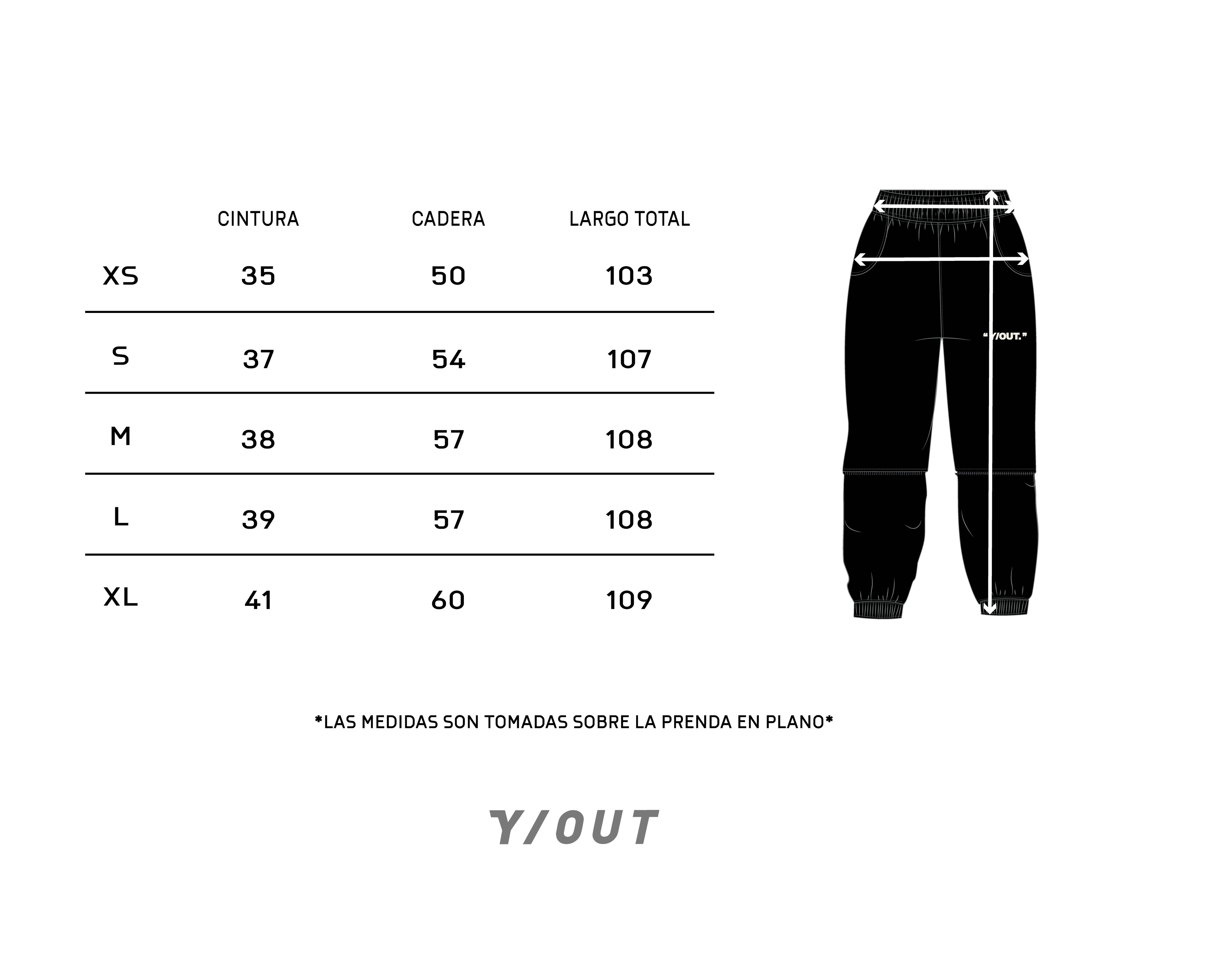 Un jogger oversize con detalles icónicos como lo son el cierre en la pierna y sus estampados en gris. Este jogger en antifluido de 280g (Medium weight) es una declaración urbana de Y/OUT